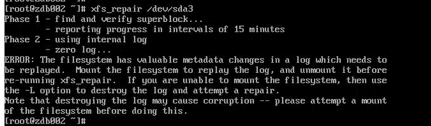 # xfs_repair -L /dev/sda3 # xfs_repair /dev/sda3