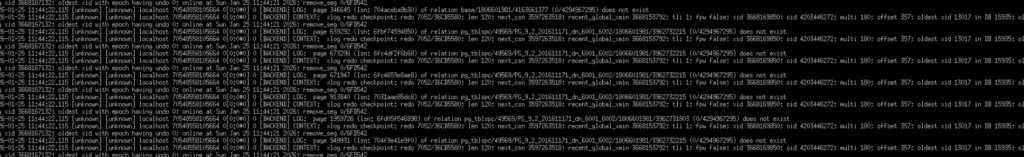 通过日志中的数据过滤,我基本确定了几个relfilenode对应的对象,均为业务高峰期频繁操作的表。推测问题可能是在业务维护过程中执行表DDL时,业务并未完全停止,进而导致了这一现象。