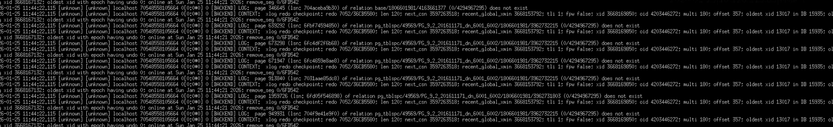 Note: 错误日志中主要是page nnn of relation pg_tblspc/xxx/xxx/xxx18066xxx/2144519xx does not exist的格式。